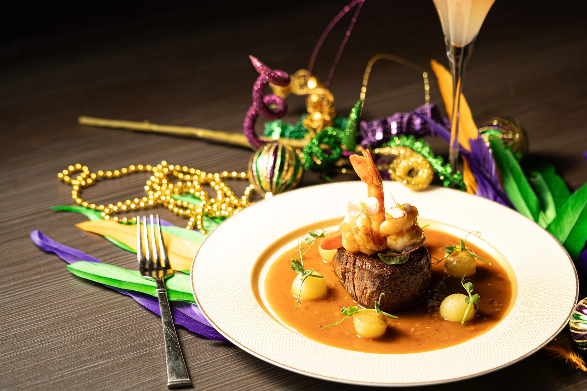 Experience Mardi Gras at Oak Park on Tuesday, February 17, with a five-course dinner created solely for this night. Each course reflects Chef Ian's fine-dining approach to New Orleans–inspired fare, accompanied by cocktails that nod to the spirit of the festival. With limited seating and a menu that leans into richness, flavor, and celebration, this is an evening meant to be savored without restraint.